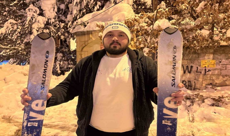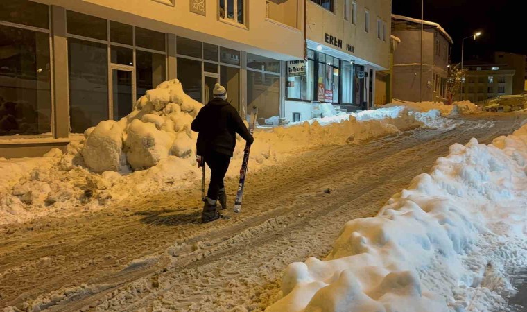 Kar kalınlığının 80 santimetreyi bulduğu Bayburt’ta, nalbur işiyle uğraşan İhsan Kocabey isimli vatandaş, caddede kayak yaptı. En büyük tutkusu kayak olan Kocabey’i görenler ise şaşkınlıklarını gizleyemedi.