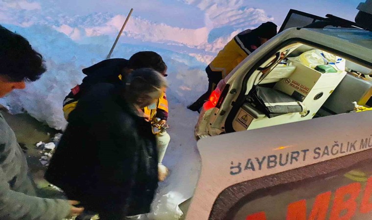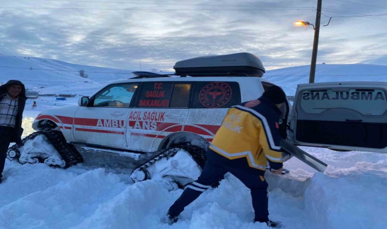 112 Acil Sağlık ekipleri, Bayburt’ta kar, tipi ve dondurucu soğuklara rağmen paletli ambulanslarla kırsalda yaşayan vatandaşlara ulaşıyor.
