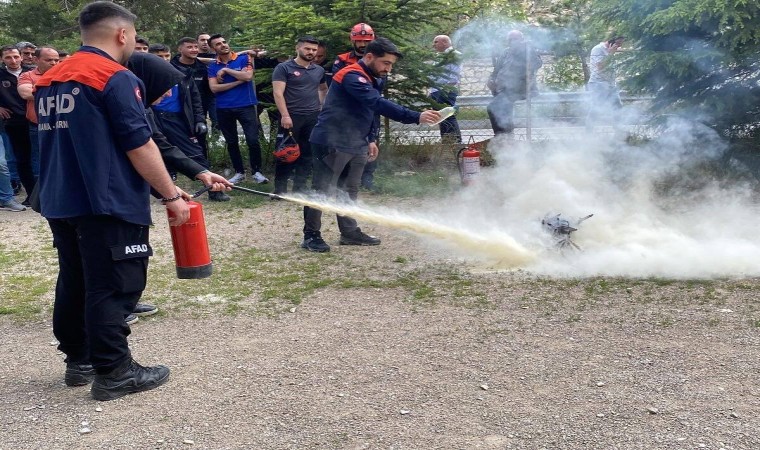 Tahliye tatbikatının kurallara uygun bir şekilde yapılmasının ardından parkta yangın farkındalık eğitimi verildi, katılımcılarla birlikte başlangıç yangınlarına taşınabilir söndürme cihazlarıyla (TSC) nasıl müdahale edileceği uygulamalı olarak gösterildi.