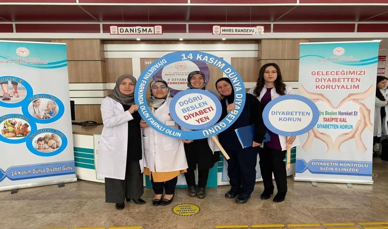 Vatandaşları bilinçlendirmek ve yürütülen çalışmalara dikkat çekmek amacıyla hastanenin giriş katında ’Geleceğimizi Diyabetten Koruyalım’, ’Doğru Beslen, Hareket Et Takipte Kal, Diyabetten Korun’ ve ’Diyabetin Farkında Olun, Farklı Olun’ sloganlarıyla sağlık personellerince stant açılarak, hastaneye başvuran hasta ve hasta yakınları diyabet ve diyet konularında bilgilendirildi.