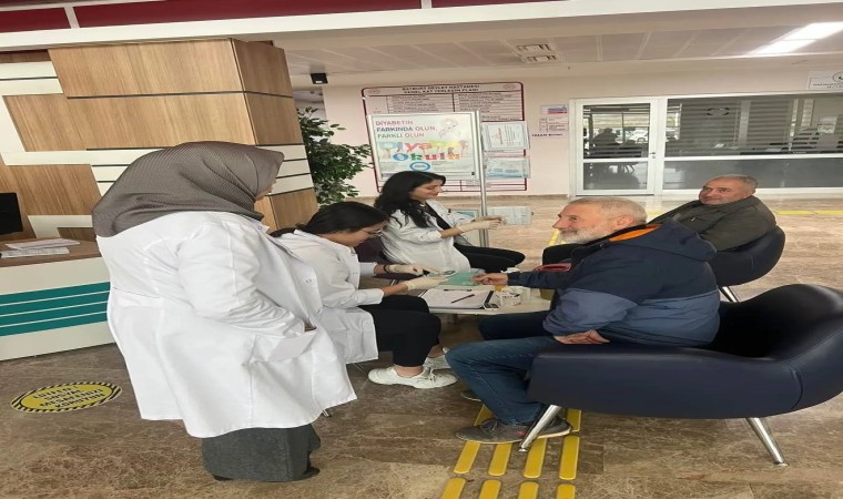 Diyabet konusunda farkındalığı arttırmak amacıyla 14 Kasım Dünya Diyabet Günü dolayısıyla Bayburt Devlet Hastanesi poliklinik giriş katında uzman kişilerce parmak ucu şeker taraması yapıldı.