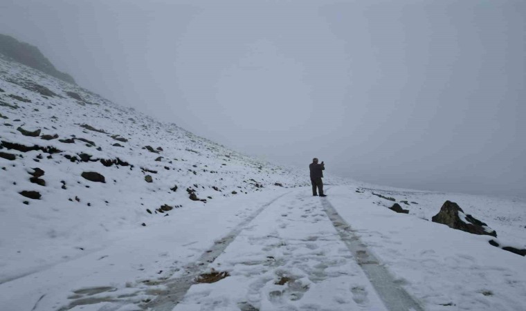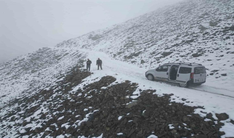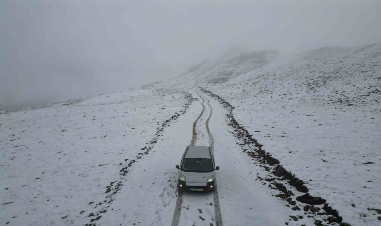Bayburt’un yüksek kesimlerindeki yaylalar, etkili olan kar yağışıyla beyaza büründü.