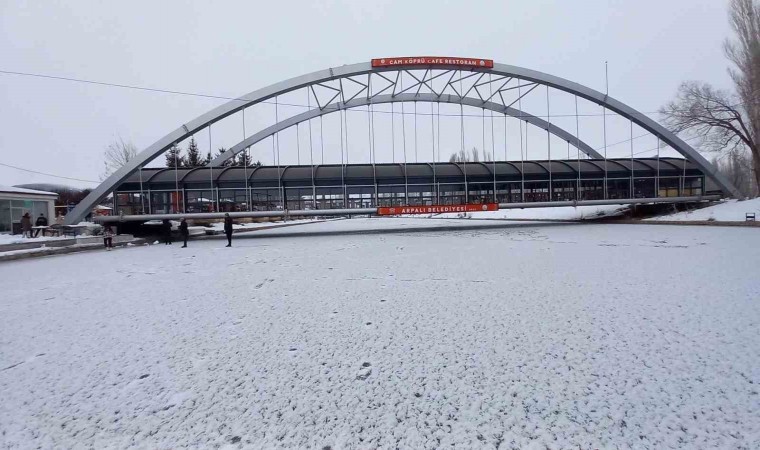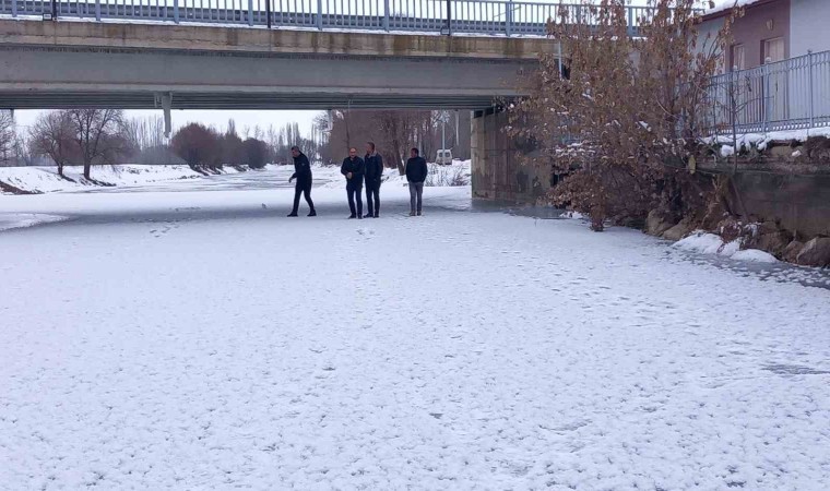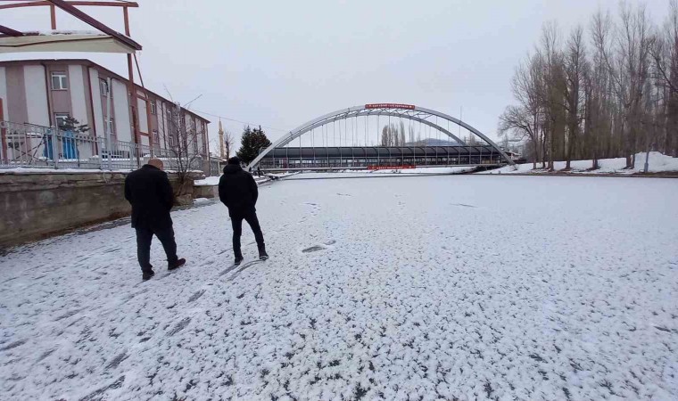 Aşırı soğukların etkisini sürdürdüğü Bayburt’ta vatandaşlar yüzeyi buz tutan Çoruh Nehri üzerinde yürüyüş yaptılar.