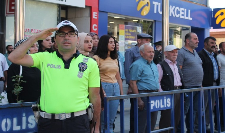 Valilik makamında tebriklerin kabul edilmesinin ardından Cumhuriyet Caddesi’ndeki kutlamalar Vali Mustafa Eldivan, Garnizon Komutanı Topçu Albay Gürol Akkaya ve Belediye Başkanı Hükmü Pekmezci’nin araç üzerinde vatandaşların bayramını tebrik etmesiyle başladı. Daha sonra törene katılanlar tarafından Saygı duruşunda bulunulup İstiklal Marşı okundu.