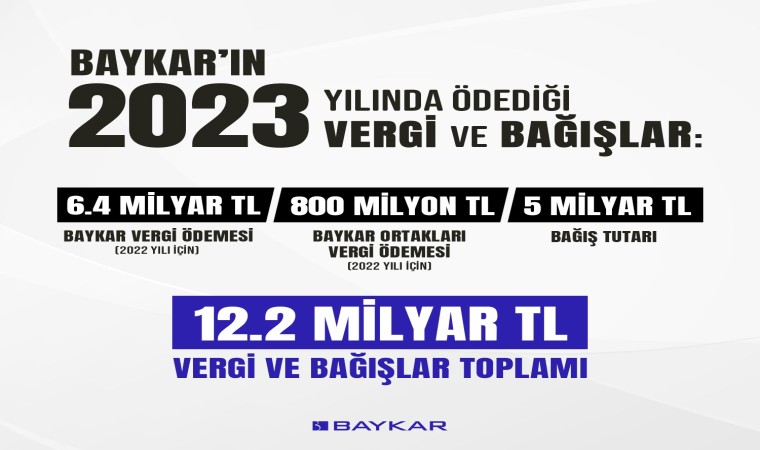 Türkiye’nin milli ve özgün SİHA sistemlerini geliştiren Baykar, 2023 yılında ödediği vergiler ve yaptığı bağışlarla Türkiye’ye 12.2 milyar TL’lik doğrudan katkı sağladı.