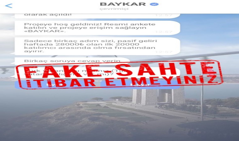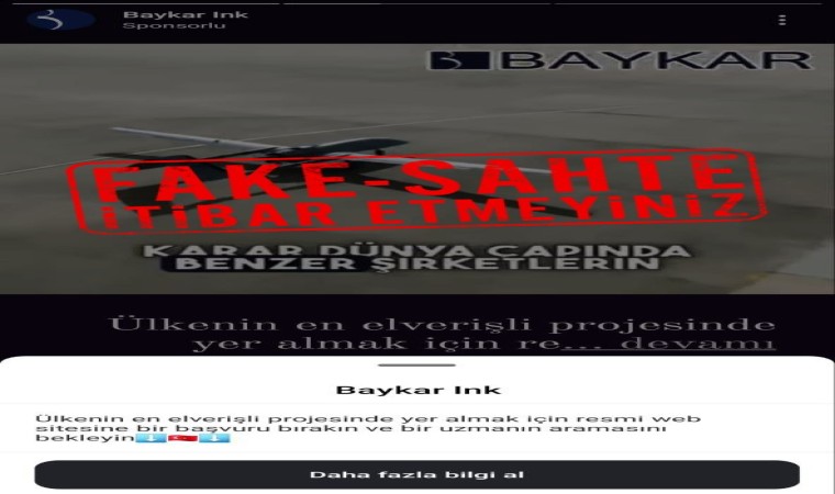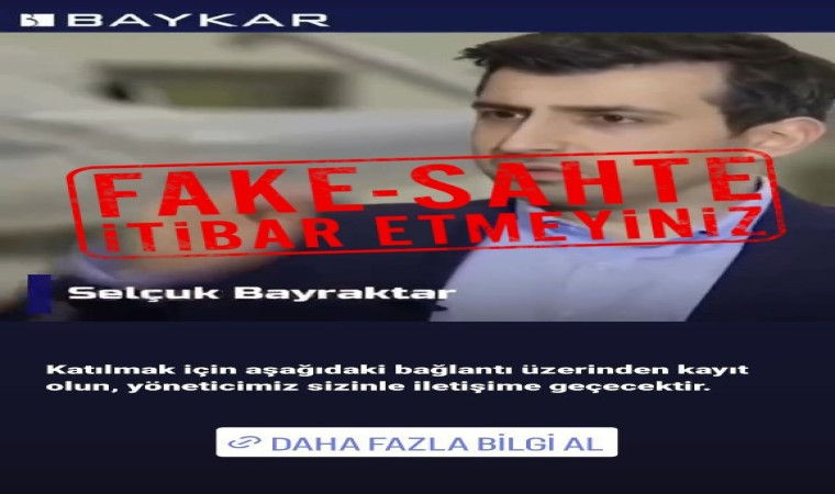 Baykar Yönetim Kurulu Başkanı Selçuk Bayraktar, sosyal medya hesabından yaptığı açıklamada, "Bir süredir internet siteleri ve sosyal medya platformlarında, Baykar’a yatırım yaparak gelir elde edebileceğinize dair sahte ilanlar, haber benzeri içerikler ve videolar dolaşıma sokulduğunu görmekteyiz. Gerçekliği olmayan bu tür ilan, haber ve videolarda yapay zaka desteğiyle şahsıma aitmiş gibi duran konuşma ve görüntüler kullanılmaktadır. Bu açıklama, video ve röportajlar benzeri içerikler kesinlikle gerçek dışıdır ve dolandırıcılık amacıyla illegal bir şekilde yayılmaktadır. Bir kez daha hatırlatmak isterim ki; halka açık bir şirket olmayan Baykar, hiçbir zaman yatırım teklifi ya da önerilerinde bulunmamaktadır. Bu tarz dolandırıcılık girişimlerine yönelik olarak hukuki süreçlerimiz devam etmektedir. Tüm vatandaşlarımızdan bu tür içeriklere karşı dikkatli olmalarını ve itibar etmemelerini önemle rica ederim" ifadelerine yer verildi.