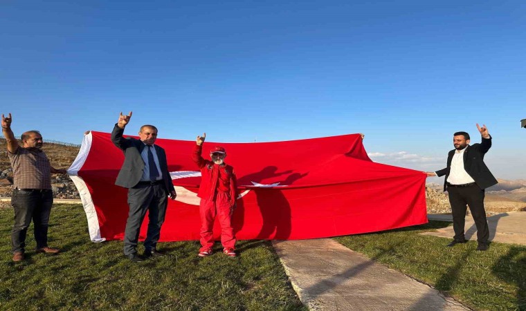 Silopi Kaymakamlığı tarafından 2023 Ekim’de inşa edilen şehitler anıtını ziyaret eden Virdiloğlu’na MHP İl Başkanı Koçero Saluci’de eşlik etti. Şehitler için duaların edilmesinin ardından uçsuz bucaksız manzara karşısında Virdiloğlu üç hilalli bayrak dalgalandırdı. Ardından MHP’li başkan Saluci de anıtın korumasını yapan askerlere dev Türk bayrağı hediye etti.