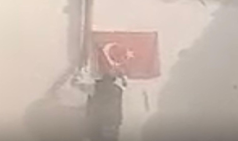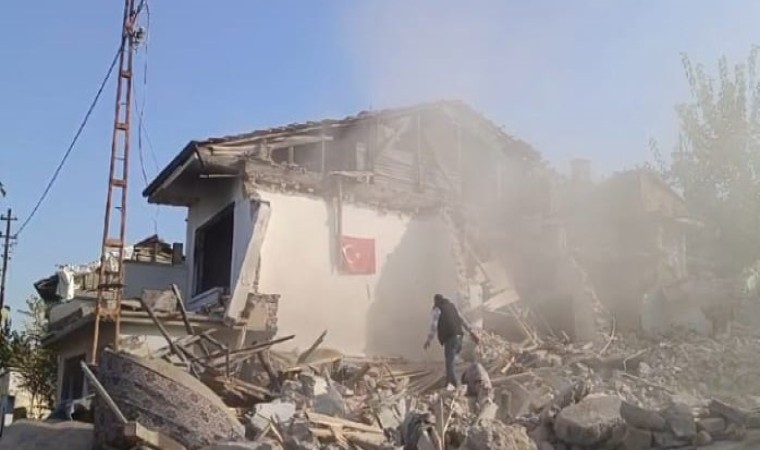 Malatya’da ağır hasarlı bir evin yıkımı sırasında fark edilen Türk bayrağı için yıkım durduruldu.