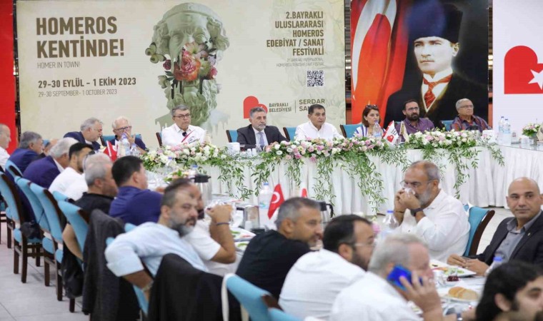 Bayraklı Belediye Başkanı Serdar Sandal, “Bayraklı ile ilgili bizim bir hayalimiz var. Bayraklı’yı marka kent yapmak istiyoruz. Geldiğimiz gün dünya çocuk ve gençlik kenti dedik. Konumuyla, birikimiyle, gençleriyle, dinamiğiyle yeni kent merkezi olması itibarıyla Bayraklı İzmir’in kalbidir. Bize ait olan değerlere sahip çıkacağız ve üstüne yenilere eklemeye devam edeceğiz. Bunlardan birisi de Homeros. Homeros uluslararası kamuoyu için de İzmir için de önemli. İzmir marka kent olacaksa bunun öncülerinden birisi Homeros olacaktır. Kentlerin geçmişten gelen serüveni, emeği, kültürü var. Bu değerleri ne kadar içselleştirirsek kent kimliğini de o kadar sağlamlaştırmış oluyoruz. Amacımız da kent kimliğini oluştururken uluslararası değerlerimizi evrensel değerlerimizle birleştirmek. Göreceksiniz İzmir’in kalbi Bayraklı’da atacak” dedi.