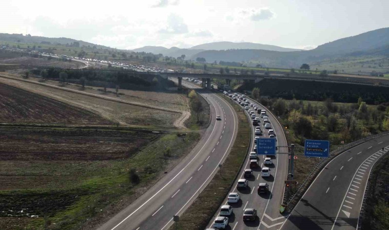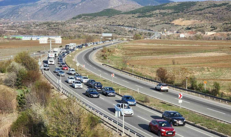 Uzun araç trafiği ise dron ile havadan görüntülendi. Yoğunluğun yarın akşam saatlerine kadar devam etmesi beklenirken, trafik ekipleri yol güzergahında denetimlerini sürdürüyor.