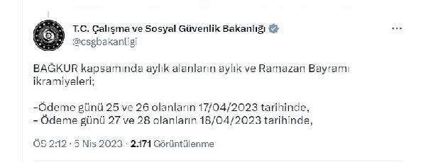 Bayram ikramiyeleri 17 Nisan'da ödenmeye başlanacak