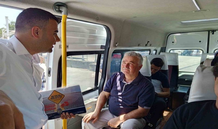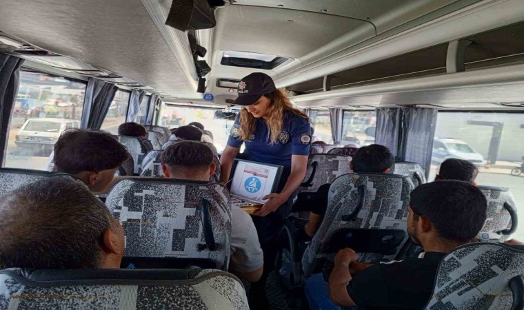 Özellikle yolcu otobüslerinde emniyet kameri kullanımıyla ilgili yolculara bilgi veren trafik ekiplerince, sürücülere de cep telefonu uyarısı yapılarak bayram çikolatası ikram edildi.