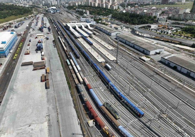 Bayram tatili nedeniyle trenlere vagonların eklenmesi havadan görüntülendi