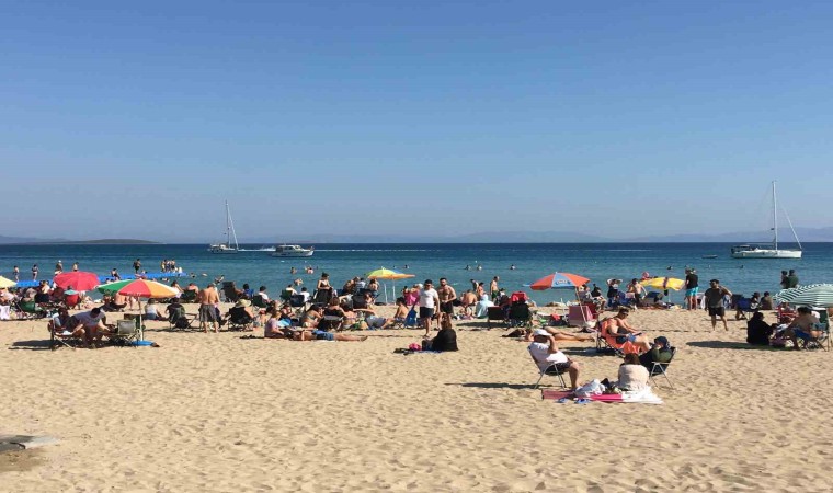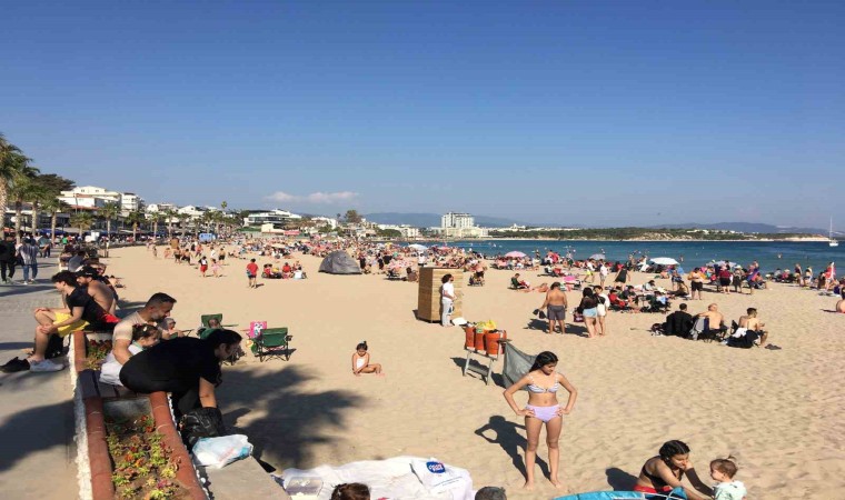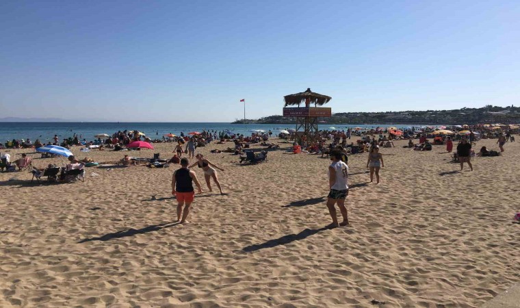 Aydın’da güneşli havayı fırsat bilenler sahile koşarken, Didim’e tatile gelen vatandaşlar da denize girerek serinledi.