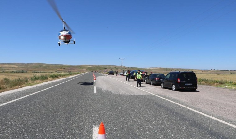 Kurban Bayramı tatili için yollara çıkan vatandaşların güvenli seyahatlerini sağlamak amacıyla Trafik Jandarma ekipleri, sık kullanılan bağlantı yollarında özel bir hava taşıtı olan "Cayrokopter" ile havadan trafik denetimleri gerçekleştirdi.