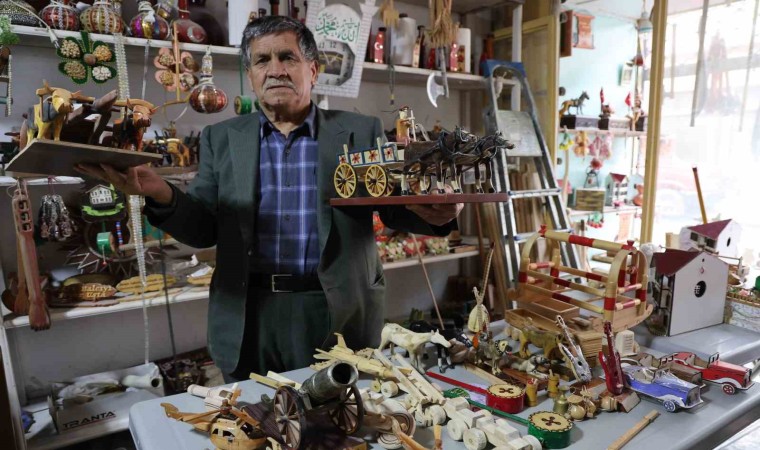 Adana’nın Kozan ilçesinde Mustafa Yıldız, hem çocuklar sağlıklı oyuncakla oynasın hem de bayramda sevinsin diye ahşabı sanata dönüştürüyor.