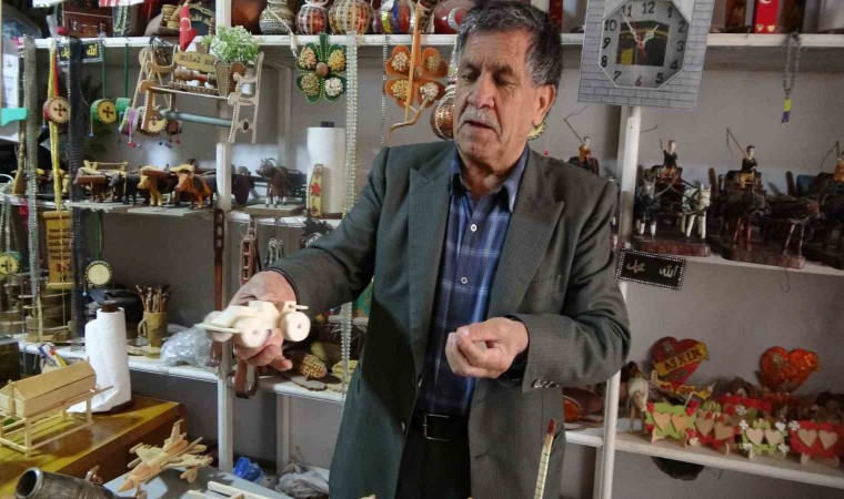 30 yıl önce hobisini devlet desteğiyle üretime çevirdiğini anlatan Yıldız, "30 yıldır bu sevgimi ahşaba yansıtıyorum. Ahşap ve tahtadan gemiler, arabalar, helikopter, topaç, yürüteçler, kağnılar, tarım aletleri onlarca geçmişin izini taşıyan şimdi günümüzde olamayan geleneksel ürünleri ahşaba işliyorum. Çocuklar gördükleri zaman çok seviyor. İstiyorum ki çocuklar plastik ve kimyasal ürünlerle değil doğal sağlıklı oyuncaklarla oynayarak büyüsün. Burada gün boyu Ramazan Bayramı onları sevindirmek için oyuncaklar yapıyorum. Aileler de gördükçe çok mutlu oluyor ben de. Artık tarımda kullanılan kağnılar, at arabaları kalmadı. Orak, topaç, ahşap çıngırak, davullar gibi yüzlerce ürün yapıyorum. Çocuklar günümüzde kamyon ve helikopteri seviyor diye onlardan da yaptım. İşlemesi zor olan ürünler 2-3 günümü alıyor. Yapması zor ama çocuklar oyuncaklarla mutlu olunca ben de çok mutlu oluyorum" diye konuştu.