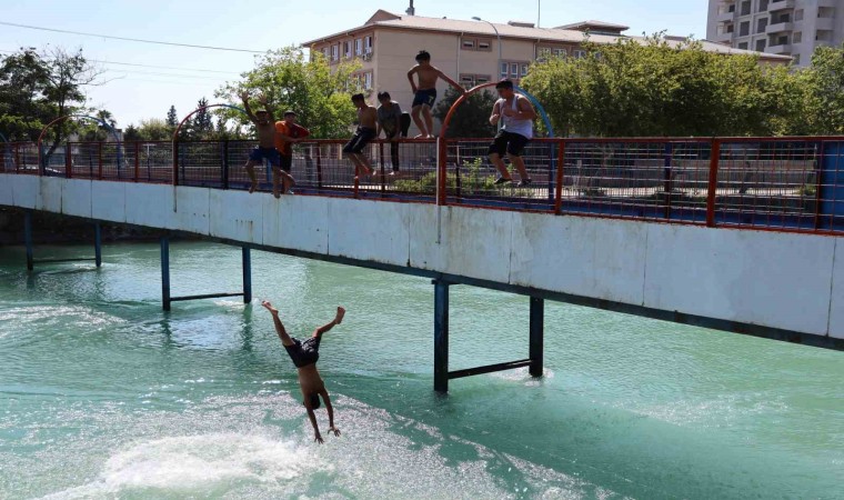 Adana’da sıcaktan bunalan gençler bayramın ikinci gününde de sulama kanallarına akın etti.