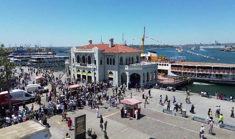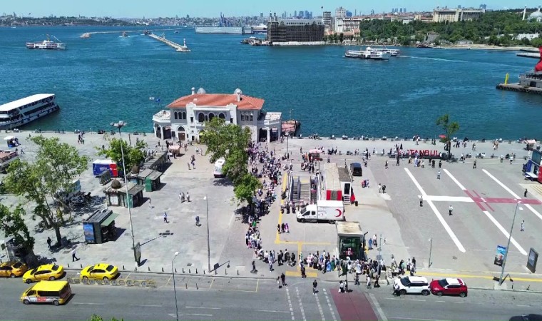 İstanbul’da Kurban Bayramı’nda sahiller ve turistik mekanlar doldu taştı. Birçok vatandaş sabahın erken saatlerde gezmeye gitmek için vapur iskelelerine akın etti. Kadıköy’de iskeleye gelen vatandaşlar vapurlarda uzun kuyruklar oluşturdu. Kadıköy iskelesindeki yoğunluk ise dronla havadan görüntülendi.