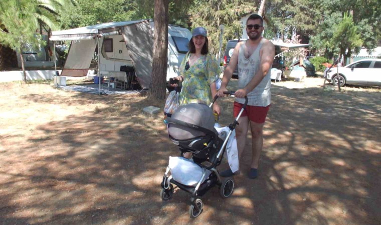 Edremit Körfezi'ndeki Burhaniye'deki Altın Kamp gibi tesislerde tatilciler, doğanın güzellikleri içinde keyifli bir tatil geçiriyorlar. Tatilciler, kuş sesleri ve doğanın sesleri eşliğinde ağaçların gölgesinde vakit geçirmenin tadını çıkarıyorlar.