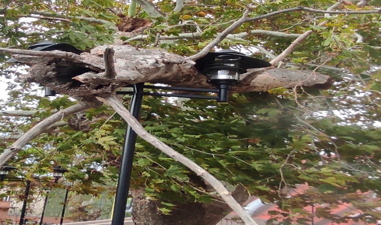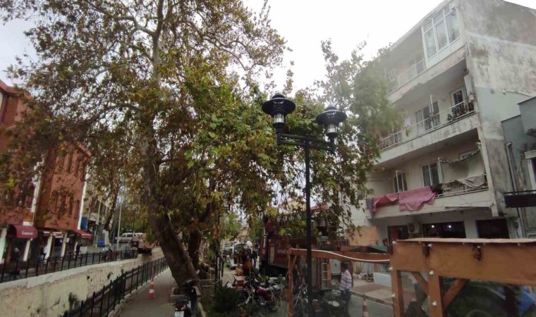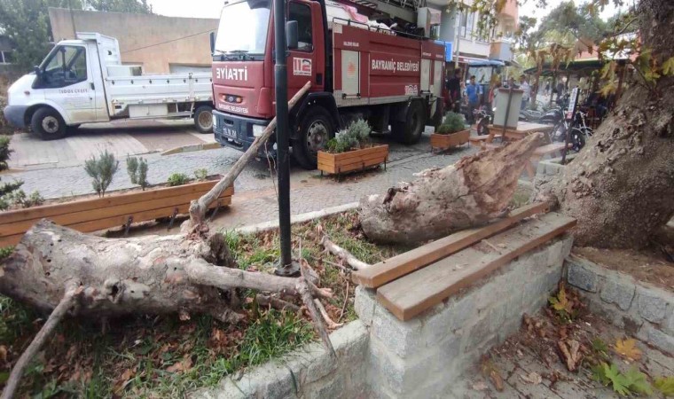 Çanakkale’nin Bayramiç ilçesinde 200 yıllık çınar ağacının yaklaşık 500 kiloluk kurumuş dalı lodos nedeniyle kırıldı. Çınar ağacının altındaki kahvehanede oturan vatandaşlar aydınlatma direğine takılmasıyla dalın altında kalmaktan son anda kurtuldu.