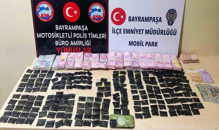 İstanbul Emniyet Müdürlüğüne bağlı Sivil Asayiş Unsurları ve Motosikletli polis ekipleri, “uyuşturucu madde imal ve ticareti” suçunun önlenmesi ve şüphelilerin yakalanmasına yönelik Bayrampaşa’da çalışma yürüttü. Yapılan çalışmalarda, 23 Şubat tarihinde Altıntepsi Mahallesi’nde bulunan cadde üzerinde bir araç şüphe üzerine takibe alındı. Bir süre sonra polis dur ihtarında bulunduğu şüphelinin aracında gerekli kontroller sağlandı. Araç sürücüsü R.O’nun üzerinde ve araçta yapılan aramalarda, 220 paket satışa hazır hale getirilmiş toplamda 375 gram kokain, 831 bin 350 lira, bin 150 euro ve 850 dolar ele geçirildi. Gözaltına alınan şüpheli, emniyetteki tamamlanan işlemlerinin ardından sevk edildiği adli makamlarca tutuklanarak cezaevine gönderildi.