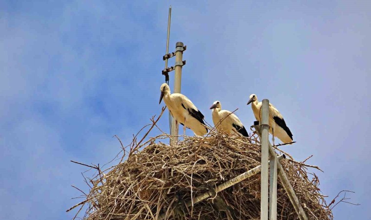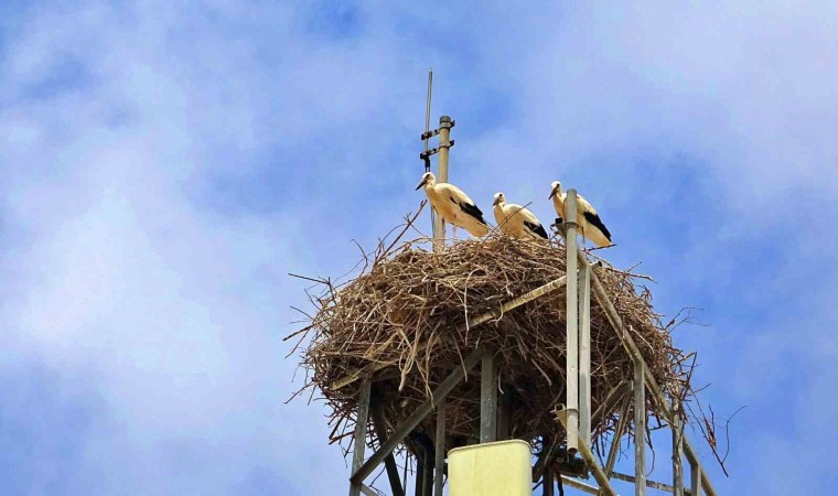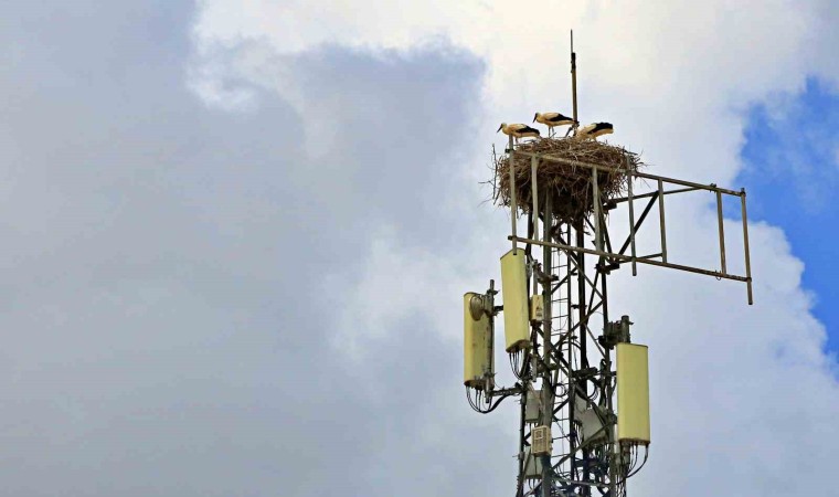 Antalya’nın gökyüzünü renklendiren uzun süreli misafirleri olan 4 leylek 10 yıldır sürekli Antalya’ya gelerek aynı baz istasyonunda bulunan yuvalarında konaklayıp yavruluyor.