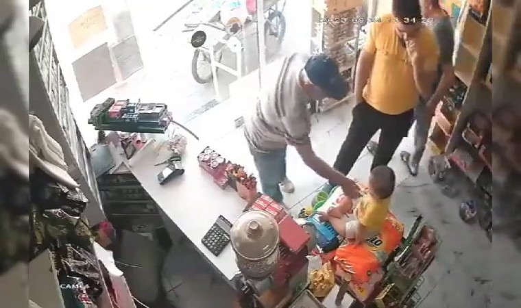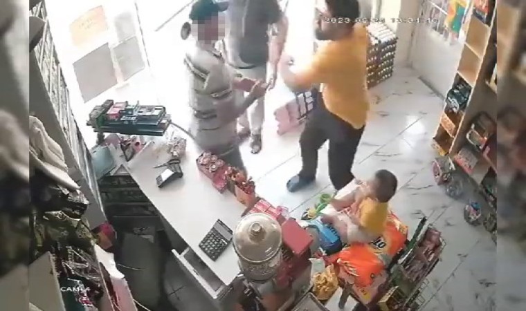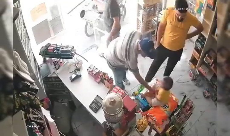 Adana’da bir baba, markette 14 aylık bebeğini taciz ettiğini öne sürdüğü yaşlı adamı darp etti. O anlar güvenlik kamerasına yansıdı.
