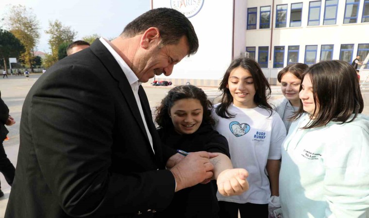Sınıf Başkanı seçilen Serra Bilezikçi’nin kendisini ziyaret ettiğini ve arkadaşlarına verdiği seçim vaadini anlattığını söyleyen Belediye Başkanı Bilal Soykan, “Geçtiğimiz hafta 6F sınıfından Serra Bilezikçi belediyemizi ziyaret etti. Sınıf başkanlığı seçimlerinde ‘Başkan olursam Belediye Başkanı’nı sınıfımıza çağıracağım’ vaadini verdiğini söyledi. Biz de Serra kızımızın sözünü yerine getirdik ve 6F sınıfını ziyaret ettik, öğrencilerimize başarılar diledik. Çocuklarımız bizim geleceğimiz, onların böyle özgüvenli olmaları çok değerli” diye konuştu.