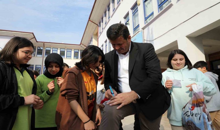 Sakarya’nın Akyazı ilçesinde bulunan ortaokulda 6’ncı sınıf öğrencisi olan Serra Bilezikçi’nin, ‘Başkan olursam Belediye Başkanı’nı sınıfımıza çağıracağım’ sözünü Belediye Başkanı Bilal Soykan yerde bırakmadı. Ders esnasında bir anda sınıfa giren Başkan Soykan’ı gören öğrenciler büyük bir şaşkınlık ve sevinç yaşadı.