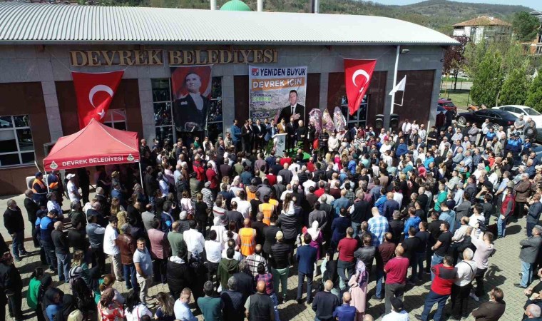 Halka hitap eden Ulupınar, “İlk talimatımız o belediye hizmet binasını oradan yıkacağız. Allah muhafaza göçmek üzere. Can yanabilir. Orayı hemen yıkacağız. Önce bir hizmet binasıyla inşallah başlayacağız. Bugün devir teslim olması gerekiyor. Gördüğüm kadarıyla devir edecek kimse yok. Devredecek 250 milyon lira borç vardı aslında, gelselerdi açıklasalardı. Geçen sene Mart ayında harcanan para 3 milyonken bu sene Mart ayında harcanan para neden 23 milyon oldu bir açıklasalardı. Vallahi billahi abdestimle duruyorum. Batmış belediyeyi devralıyoruz çok şükür. Allah’ım nasip etti. Çok şükür belediyeyi de Devrek’i de kurtarmayı bizlere. Vekillerimizle, hükumetimizle beraber başaracağız” dedi.