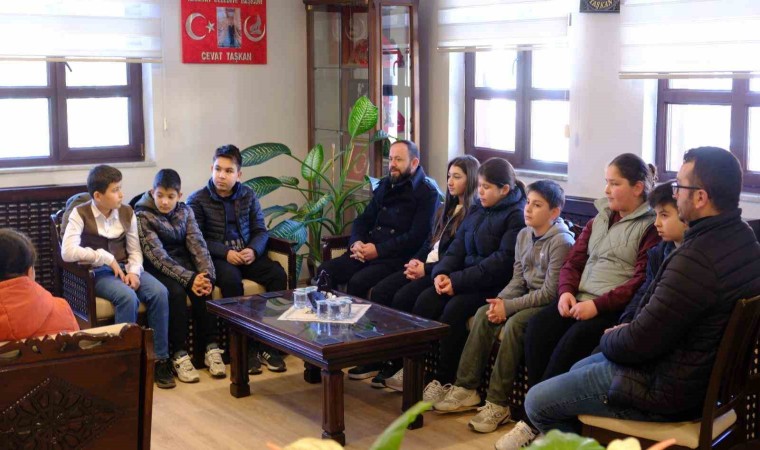 Görüşmenin sonunda Başkan Taşkan, öğrencilere çeşitli hediyeler takdim etti.