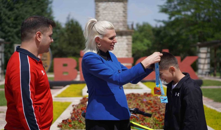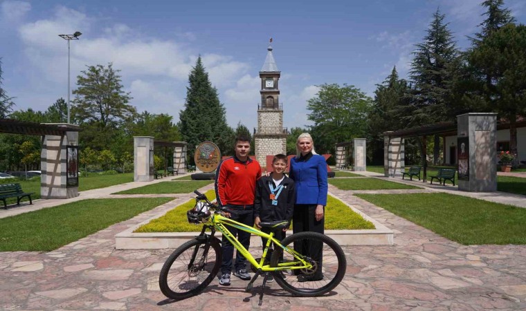 Belediye Başkanı Melek Mızrak Subaşı, 11-12 Yaş Ulusal Gelişim Projesi Ligi grup müsabakalarında 50 metre kurbağalamada, 1’inci olarak finale yükselen Sporcu Ali Çınar Bilgin’e bisiklet hediye etti.