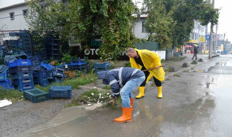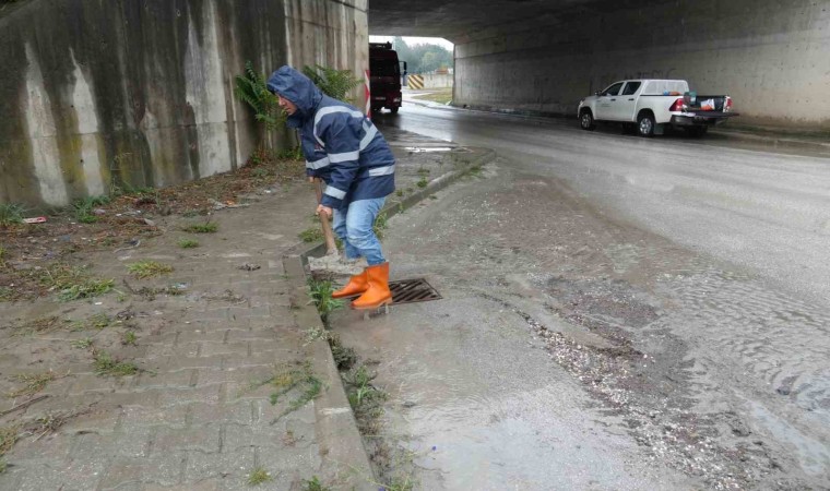 Meteoroloji Genel Müdürlüğü’nden yapılan yağış uyarısının ardından şehir merkezinde sabah saatlerinde sağanak yağış etkili oldu. Sokaklarda su birikintilerinin önüne geçmek isteyen Düzce Belediyesi Fen İşleri Müdürlüğü ekipleri de sokak aralarından ana arterlere kadar mazgallarda temizlik çalışması gerçekleştirdi.