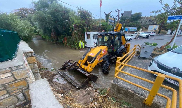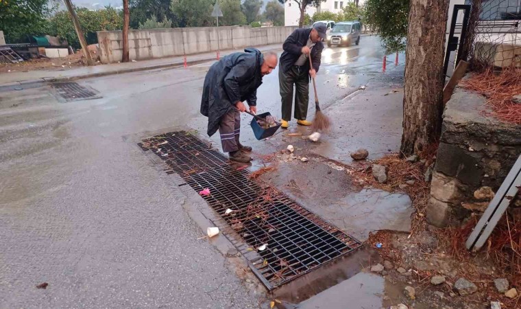 Bodrum Belediyesi ekipleri, kent genelinde etkili olan sağanak yağışlarda meydana gelebilecek olumsuzlukları engellemek amacıyla saha çalışmaları gerçekleştiriyor.