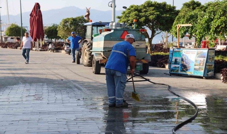 239 personelle çalışan Temizlik İşleri Müdürlüğü bin 650 noktada yer alan 4 bin 400 konteynırı günde 2 kez boşaltıyor. Çöp taksiyle 24 saat boyunca 11 kez ring yaparak 400 adet çöp sepetini temizliyor. Tüm bunların yanı sıra yaz aylarında günde ortalama deniz üstünde yer alan 6 bin teknenin atığını topluyor. Öte yandan sorumluluk alanı dışındaki koylar, orman alanları, karayolları kenarları, piknik noktaları, seyir tepelerinin temizliği de mesainin büyük bir kısmını kaplıyor.