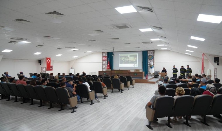 Eğitimde, evde, iş yerinde ve arabalarda oluşabilecek yangın türlerini anlatan Koyuncu, işyerinde daha önceden belirlenen söndürme ekibinin kişisel koruyucu donanımlarını kuşanarak yangına müdahale çalışmalarını devam ettirmesi gerektiğini söyledi. Koyuncu, itfaiye ekibi gelene kadar mahsur kalan varsa kurtarma çalışmalarının yapılması, ilkyardım gerektiren acil durum oluşmuşsa ilkyardım yapılması, korunması gereken kurtarılmış eşyanın koruma altına alınması gerektiğini ifade etti.