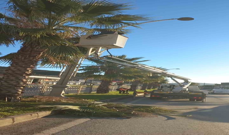 Yapılan çalışmalar kapsamında Bodrum’un ana arteri konumunda olan ve trafik yoğunluğunun yaşandığı Atatürk Caddesi’nde palmiye ağaçlarına budama işlemi yapıldı.