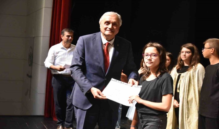 Başkan Bakkalcıoğlu konuşmasının ardından öğrencilere Belediye Başkan Yardımcısı Ali Şahinoğlu ile birlikte belgelerini takdim etti.