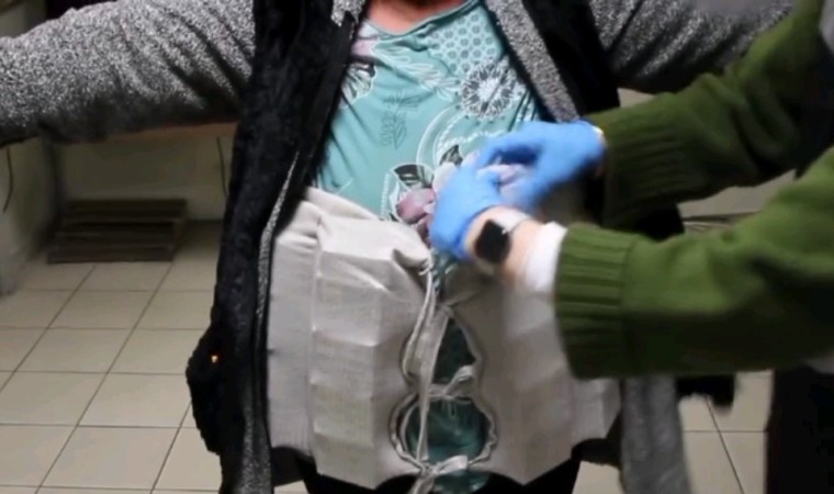 Türkiye’ye giriş yapmak üzere Kapıkule gümrük sahası yolcu giriş salonuna gelen bir kadın, pasaport işlemlerini tamamladıktan sonra gümrük muhafaza kontrol noktasına geldi. Gümrük Muhafaza Kaçakçılık ve İstihbarat Müdürlüğü ekipleri, yürüyüş ve davranışından şüphelendikleri kadının üzerinde arama yaptı.