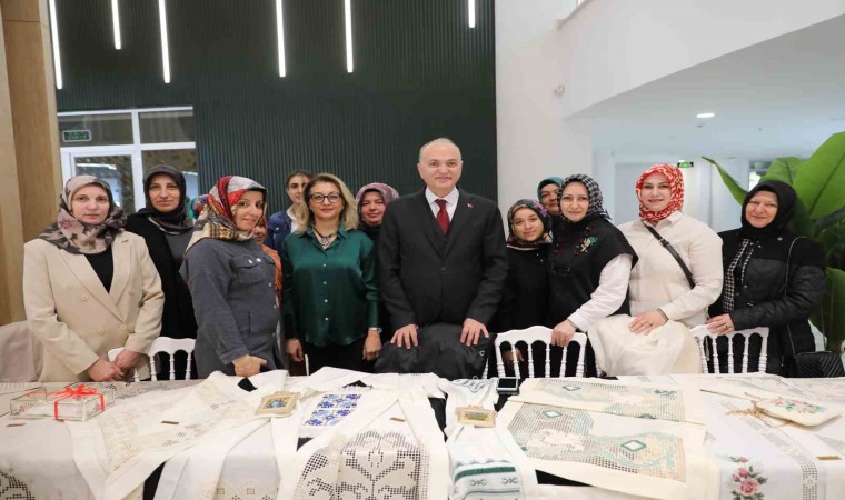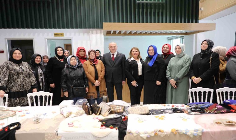 Kadınların her konuda giriştikleri işi emek ve özveri ile yaptıklarını belirten Başkan Özlü, kursiyerlerden eserleri hakkında bilgi aldı ve fotoğraf çektirdi. Kursiyerler de Başkan Özlü’ye hediye vererek serginin hazırlanması konusunda verdikleri destek dolayısıyla teşekkür etti.