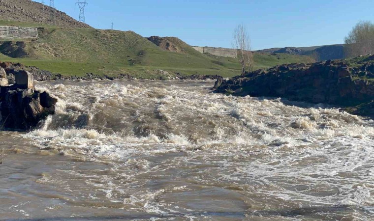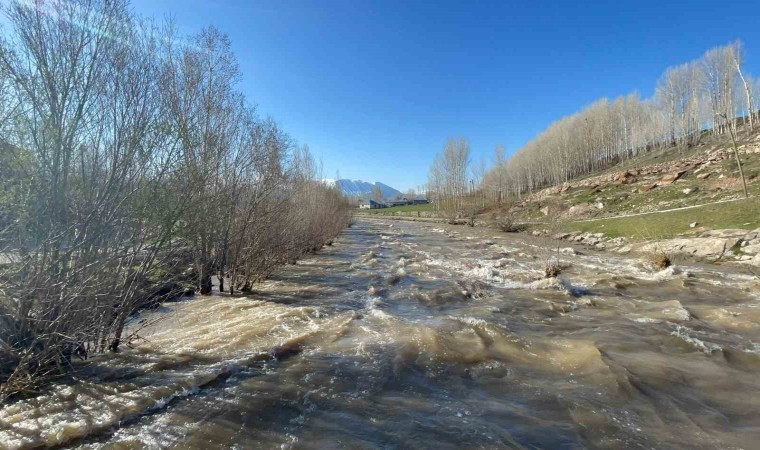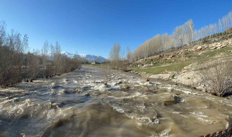 Van’ın Muradiye ilçesindeki Bendi Mahi Çayı, yağışların bol olması ve karların erimesiyle gürül gürül akmaya başladı.