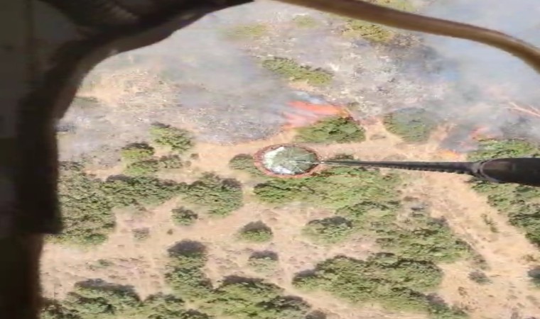 İzmir’in Bergama ilçesinde çıkan orman yangınına havadan ve karadan müdahale sürüyor.