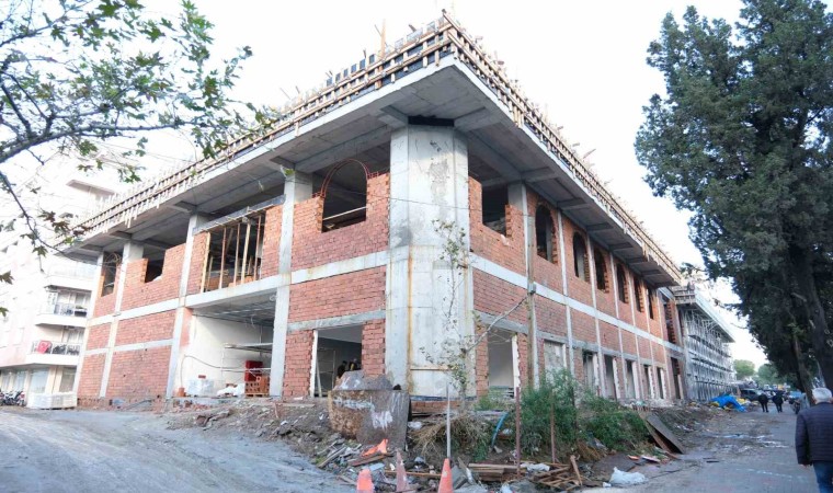 Bergama Millet Bahçesinin yanında yer alacak 48 dükkanlık Bergama Belediyesi Esnaf Çarşısının yapımı devam ederken, iki katlı olarak inşa edilen iş yerleri kentin önemli bir ihtiyacını karşılayarak istihdama da katkı sağlayacak.