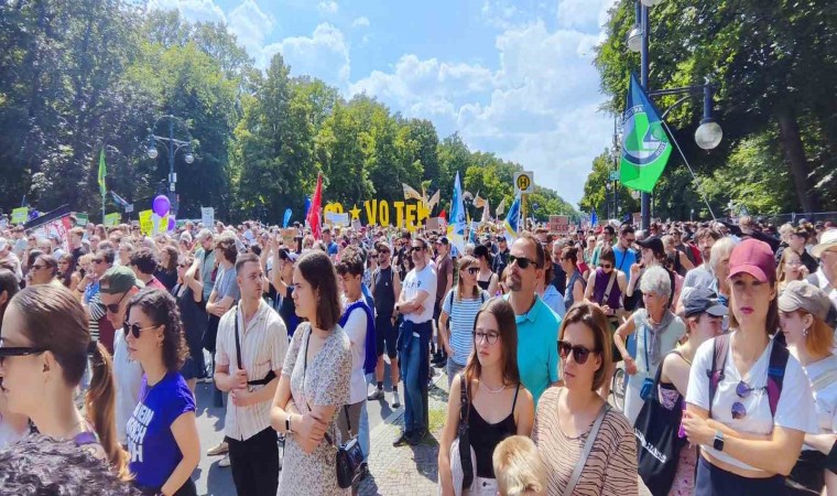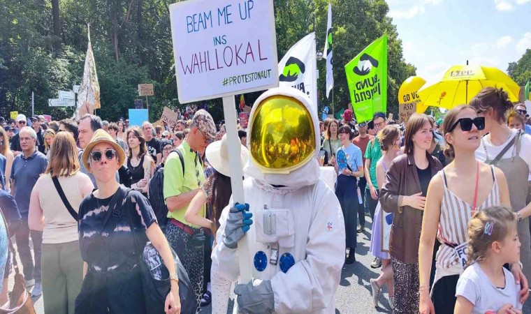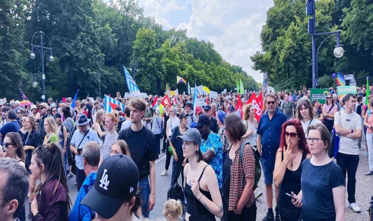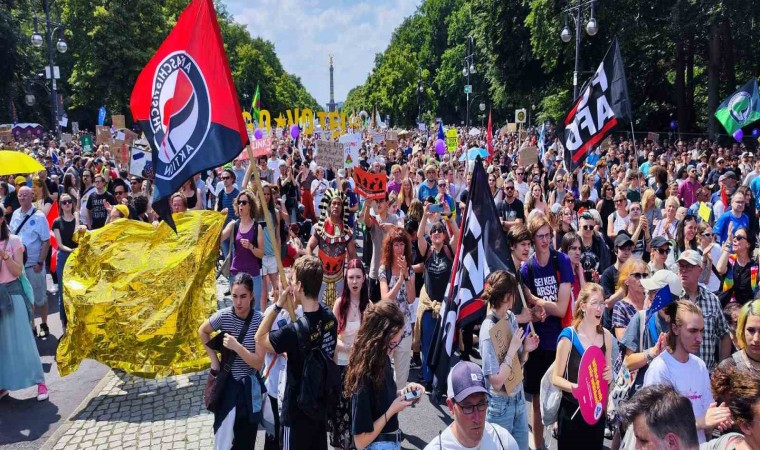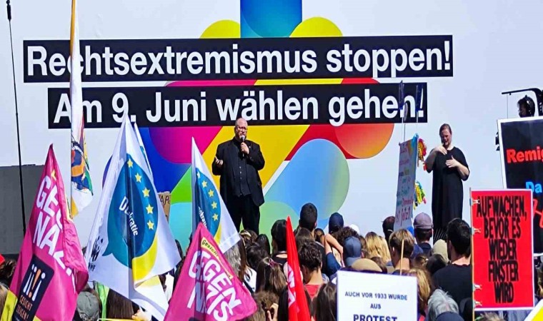 Almanya’da Avrupa Parlamentosu (AP) seçimlerinden bir gün önce başta başkent Berlin olmak üzere 11 farklı noktada "Aşırı sağı durdur, demokrasiye sahip çık" mitingleri düzenlendi. Berlin’de çeşitli sivil toplum kuruluşlarının organizasyonuyla gerçekleştirilen ve yaklaşık 15 bin kişinin katıldığı ırkçılık karşıtı miting, Zafer Anıtı önünde çocuklara yönelik müzik ve çeşitli eğlence aktiviteleriyle başladı. Çocuk aktiviteleriyle, demokrasinin özellikle çocuklar ve gençlerin geleceği için ne kadar önemli olduğunun altı çizildi. Kurulan sahnede sırayla söz alan konuşmacılar, yaklaşan AB Parlamentosu seçimleri öncesinde Avrupa’da artan ırkçılık ve aşırı sağ tehdide dikkat çekerek, demokrasinin korunması için artık daha fazla çaba sarf edilmesi gerektiğine vurgu yaptı. "Demokratik, açık ve çeşitlilik içeren bir toplumu, barışı, özgürlüğü, insan haklarını, insan onurunun korunmasını, ekonomik güvenliği ve sosyal adaleti savunuyoruz" ifadelerini kullanan göstericiler, yarın gerçekleştirilecek AP seçimlerinde mutlaka oy kullanılması gerektiğine dikkat çekti.