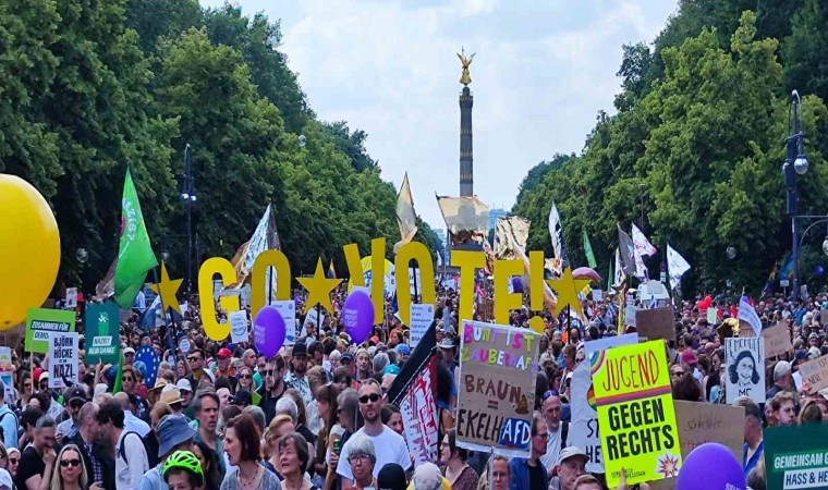 Almanya’nın başkenti Berlin başta olmak üzere birçok şehrinde düzenlenen "Aşırı sağı durdur, demokrasiye sahip çık" mitingiyle Avrupa’da artan ırkçılığa dikkat çekildi.