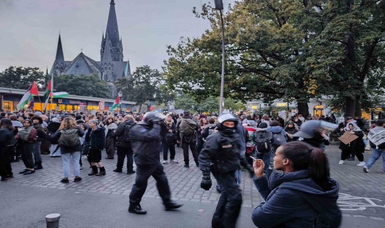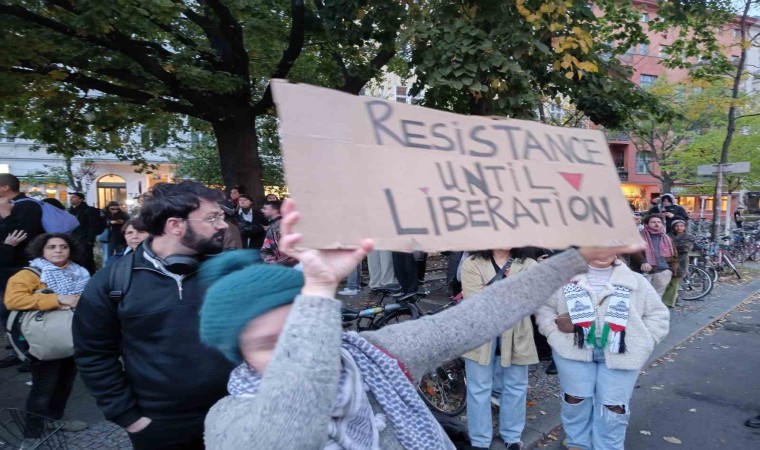 Almanya’nın başkenti Berlin’de İsrail saldırılarının birinci yıldönümünde Filistin’e destek gösterisine polis müdahale etti.