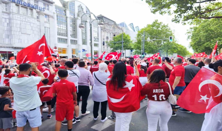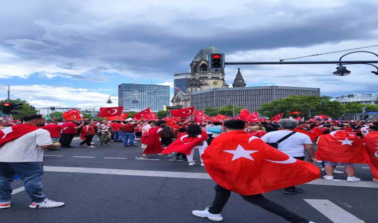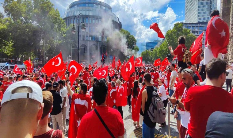 Türk taraftarlar Avrupa Futbol Şampiyonası (Euro 2024) çeyrek final maçının oynanacağı Berlin Olimpiyat Stadı’na doğru 50 bin kişiyle yürüyüşe geçti.