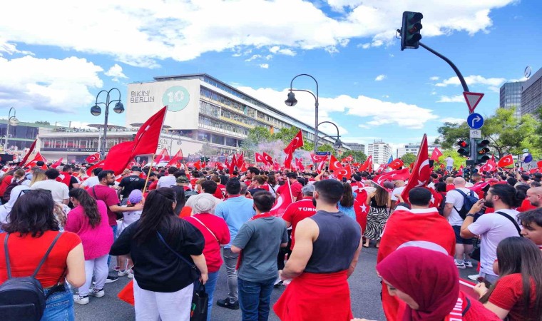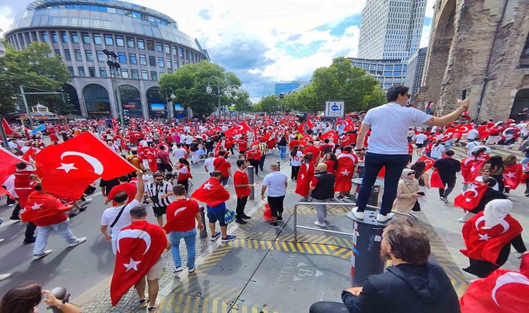 Türkiye ile Hollanda arasında oynanacak olan Avrupa Futbol Şampiyonası (Euro 2024) çeyrek final maçı öncesi Türk taraftarlar Berlin’in merkezinde yer alan Breitscheidplatz Meydanı’nda toplandı. Berlin polisi Türk taraftarların toplanacağı meydana çıkan yolları trafiğe kapayarak güvenlik önlemi aldı. Burada toplanan yaklaşık 50 bin Türk taraftar marşlar ve şarkılar eşliğinde çeyrek final maçının oynanacağı Berlin Olimpiyat Stadyumu’na doğru hep birlikte yürüyüşe geçti. Berlin sokakları, milli takım formaları taşıyan ve Türk bayrakları dalgalandıran taraftarlar bir anda kırmızı-beyaz renklere büründü.