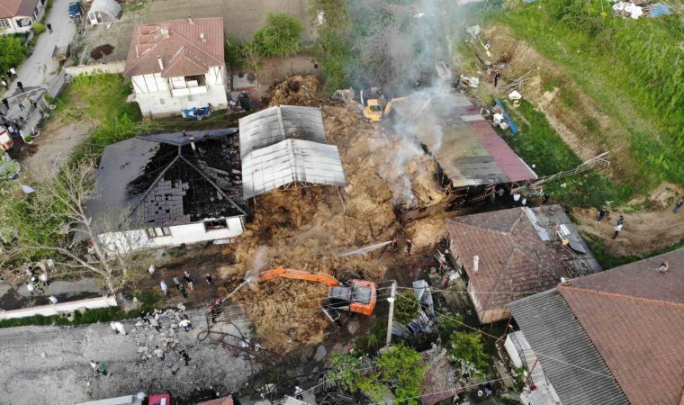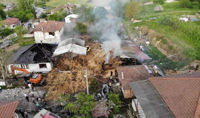 Kızılbayır Mahallesi’nde bulunan ve A.Ö.’ye ait olduğu öğrenilen besi çiftliğinde henüz belirlenemeyen bir nedenle yangın çıktı. Alevlerin samanlık, ev ve kurbanlık büyükbaş hayvanlarının bulunduğu ahıra sıçraması üzerine durum 112 Acil Çağrı Merkezi’ne bildirildi. İhbar üzerine olay yerine çok sayıda itfaiye, polis ve sağlık ekibi sevk edildi. Olay yerine gelen itfaiye ekipleri yangını söndürmek için seferber olurken yangında çok sayıda kurbanlık büyükbaş telef oldu. Dumandan etkilenen bazı büyükbaş hayvanlar ise olay yerinde kesilerek mezbahaya gönderildi. Meydana gelen yangında M.A. isimli kişi duman etkilenerek hastaneye kaldırıldı. Ekipler, yangını uzun uğraşları neticesinde kontrol altına alarak söndürdü, soğutma çalışmaları sürüyor. Öte yandan, çiftliğin alev alev yandığı anlar cep telefonu kamerası ile yangın bölgesi ise havadan dron ile görüntülendi.